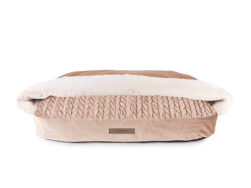 Matrace s přístřeškem z kolekce VELVET je určena pro psy jako kryté odpočinkové místo. Konstrukce zahrnuje integrovaný přístřešek nad lehací plochou.