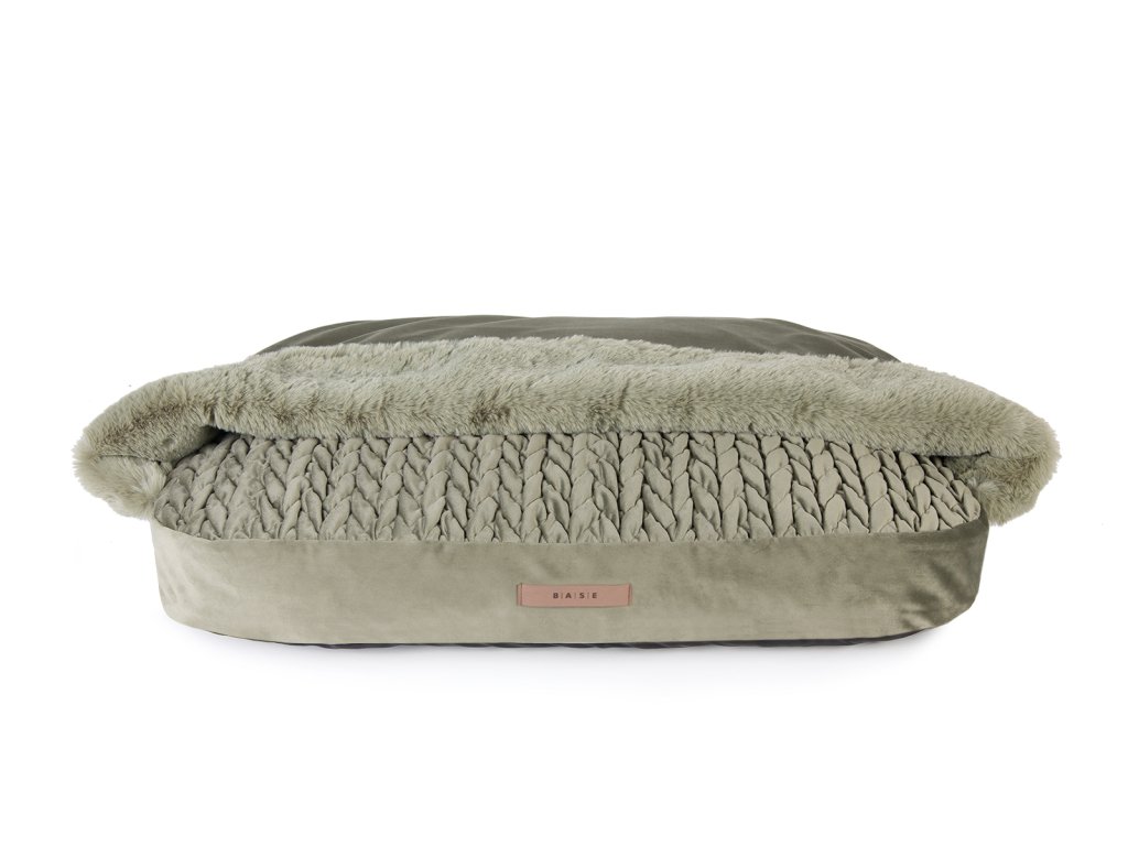 Matrace s přístřeškem z kolekce VELVET je určena pro psy jako kryté odpočinkové místo. Konstrukce zahrnuje integrovaný přístřešek nad lehací plochou.