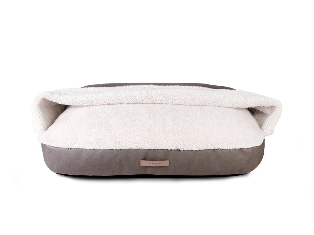 Matrace s kapucí z kolekce VOGUE je určena pro psy jako kryté odpočinkové místo. Konstrukce zahrnuje pevnou lehací plochu a textilní kapuci nad matrací.