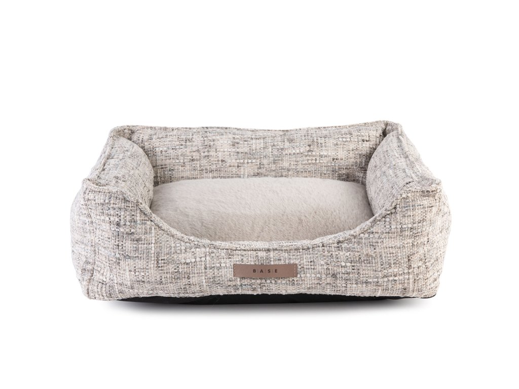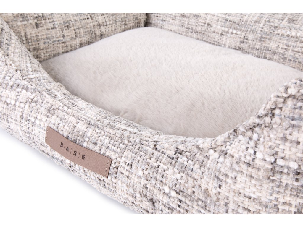 Vnější část pelíšku tvoří pevná textilní tkanina s jemnou strukturou. Vnitřní plocha je z měkké textilie s kožešinovým povrchem. Boky a polštáře jsou vyplněny silikonovými kuličkami, které zajišťují rovnoměrné rozložení výplně.