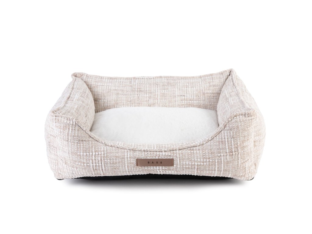Vnější část pelíšku tvoří pevná textilní tkanina s jemnou strukturou. Vnitřní plocha je z měkké textilie s kožešinovým povrchem. Boky a polštáře jsou vyplněny silikonovými kuličkami, které zajišťují rovnoměrné rozložení výplně.