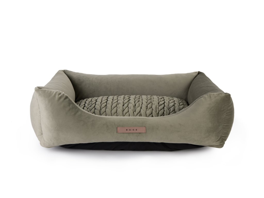 Pelíšek je zhotoven ze sametové tkaniny s jemnou strukturou. Vnitřní plocha je doplněna textilním chloupkem. Vyvýšené boční okraje slouží jako opěrná část při odpočinku.
